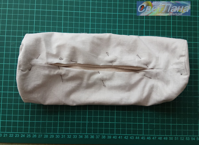 Собрала подкладку, оставив не зашитым вход в чемоданчик